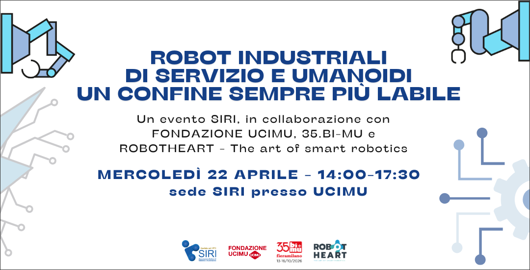 “Industrial Service Robots and Humanoids an increasingly blurred boundary” is a 35.BI-MU – RobotHeart approach Event and is scheduled for Wednesday, April 22, at UCIMU-SISTEMI PER PRODURRE offices.