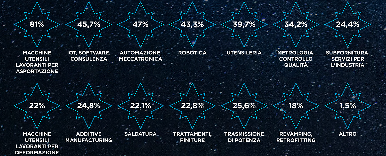 Macchine utensili a asportazione, deformazione e additive, robot, digital manufacturing e automazione, tecnologie abilitanti, subfornitura.